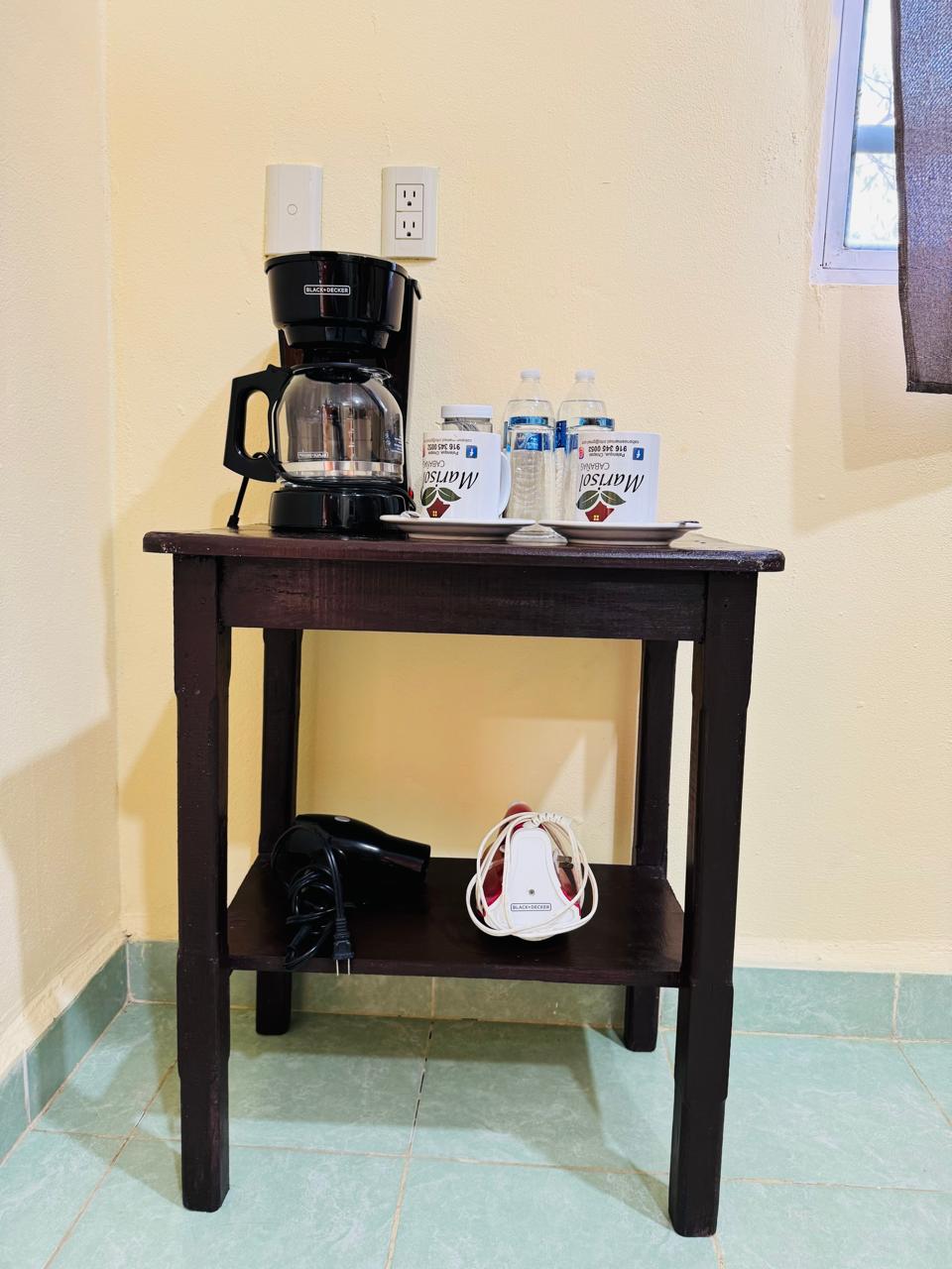 - Estación de café (Café, azúcar, agua, tazas, Etc)